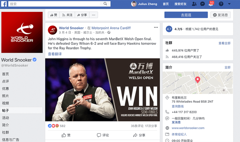 斯诺克脸书推荐。 查看更多>>