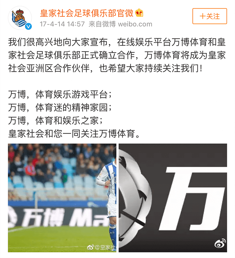 为庆祝双方合作协议正式达成,皇家社会足球俱乐部特在其官方微博的首页发布官宣申请,